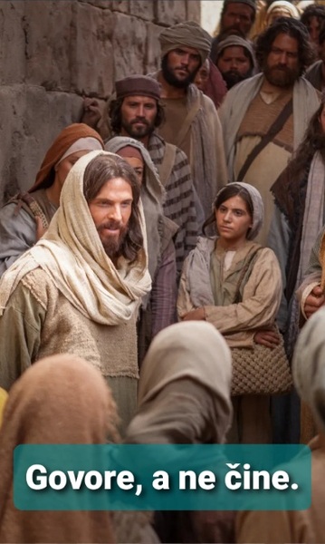 U ono vrijeme: Isus prozbori mnoštvu i svojim učenicima: »Na Mojsijevu stolicu zasjedoše pismoznanci i farizeji. Činite dakle i obdržavajte sve što vam kažu, ali se nemojte ravnati po njihovim djelima jer govore, a ne čine. Vežu i ljudima na pleća tovare teška nesnosna bremena, a sami ni da bi ih prstom makli. Sva svoja djela čine zato da ih ljudi vide. Doista, proširuju zapise svoje i produljuju rese. Vole pročelja na gozbama, prva sjedala u sinagogama, pozdrave na trgovima i da ih ljudi zovu ‘Rabbi’. Vi pak ne dajte se zvati ‘Rabbi’ jer jedan je učitelj vaš, a svi vi ste braća. Ni ocem ne zovite nikoga na zemlji jer jedan je Otac vaš — onaj na nebesima. I ne dajte da vas vođama zovu jer jedan je vaš vođa — Krist. Najveći među vama neka vam bude poslužitelj. Tko se god uzvisuje, bit će ponižen, a tko se ponizuje, bit će uzvišen.«