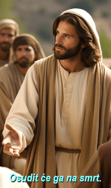 U ono vrijeme: Dok je Isus uzlazio u Jeruzalem, uze dvanaestoricu nasamo te im putem reče: »Evo, uzlazimo u Jeruzalem i Sin Čovječji bit će predan glavarima svećeničkim i pismoznancima. Osudit će ga na smrt i predati poganima da ga izrugaju, izbičuju i razapnu, ali on će treći dan uskrsnuti.«