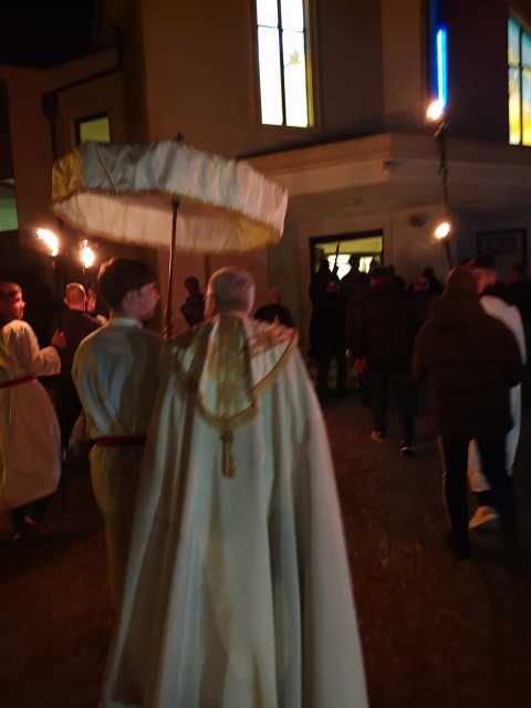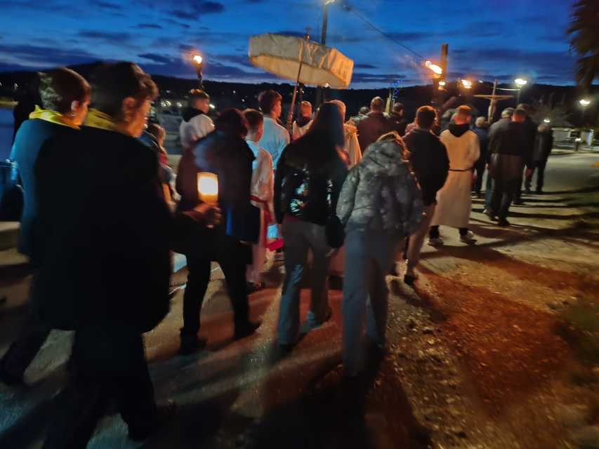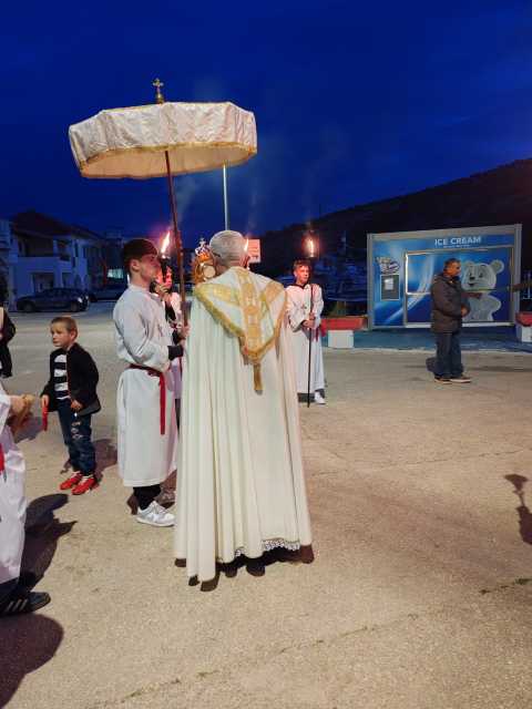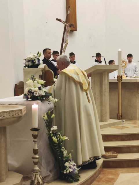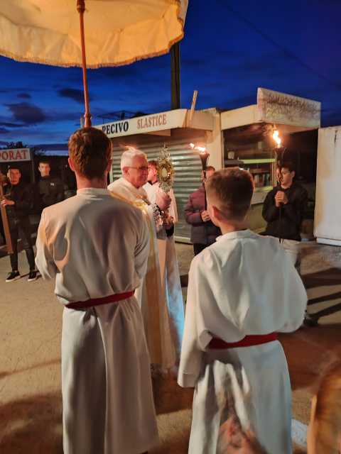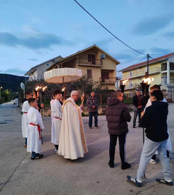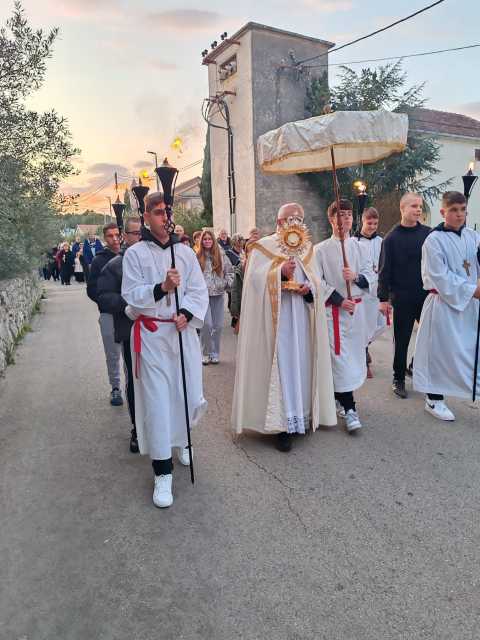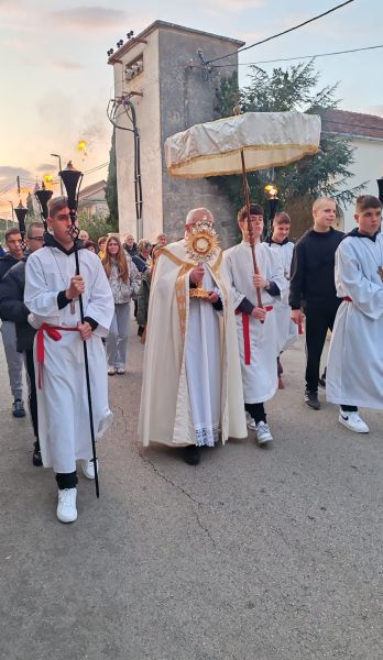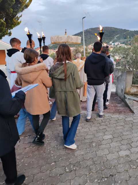 Stoga i večeras u Kristovu uzvišenju na križu otkrivamo dar kojim nas je obdario, jer je i nas sa sobom uzvisio učinivši nas novim ljudima u svome raspetom tijelu. Uostalom, sve što je učinio, učinio je poradi nas i našega spasenja. Noseći svoj križ, ostavio nam je primjer, a njegova patnja na križu nije samo njegova, već i naša, budući da je patio za nas. Njegovo predanje na križu nije samo jedan izdvojeni trenutak povijesti, prihvaćen silom prilika, već je događaj koji oblikuje povijest i život svakoga od nas. Večeras stojimo pred svetim križem ponizni i ponosi u isto vrijeme, dok dušu ispunja sveta tišina. Ne usuđujemo se niti disati od osjećaja svete prisutnosti koja ne traži puno riječi, već prije svega traži dušu koja ćuti Gospodina Boga i njegovu bol nad ljudskom zloćom i grijehom. No u ovoj teškoj tišini u kojoj je i Božji Sin prestao disati, ipak slutimo pobjedu svetoga križa nad smrću, što nam daje utjehu u našoj boli i snagu u našoj borbi. Dopustimo stoga Gospodinu da nas oblikuje svojim križem, tim istinskim sredstvom oblikovanja novoga čovjeka koji je pozvan biti i živjeti ne samo na sliku svoga Stvoritelja, već i na sliku svoga Otkupitelja, kojemu neka je slava u vijeke vjekova. Amen.