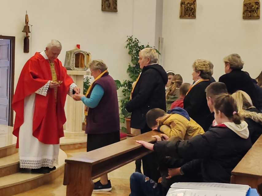 Uz križ su Isusov stajale majka njegova, zatim sestra njegove majke, Marija Kleofina, i Marija Magdalena. Kad Isus vidje majku i kraj nje učenika kojega je ljubio, reče majci: »Ženo! Evo ti sina!« Zatim reče učeniku: »Evo ti majke!« I od toga časa uze je učenik k sebi.